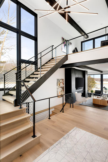 Основний акцент – на функціональність і простір, без зайвих декоративних елементів. В оздобленні переважають світлі тони та великі вікна, що наповнюють будинок природним світлом.